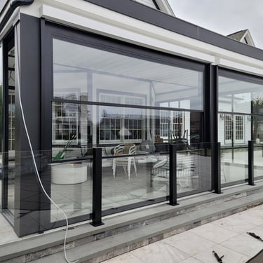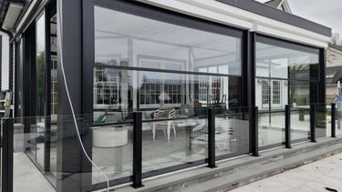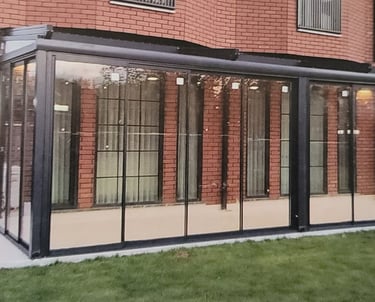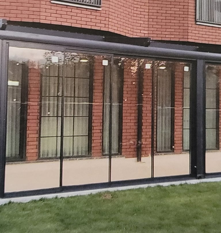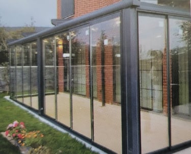 It's customized architectural glass solution, we can make a design and configutation to suit your building. The remote- controlled motorized Guillotine Glass System is ideal for backyard, patios, garden, restaurant and office.