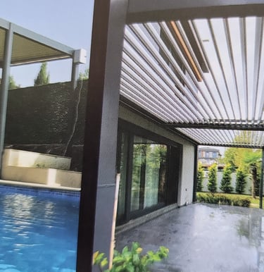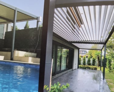 Bioclimatic Pergola System, which provide air- conditioning by utilizing the natural circulation of the air, provide air passage thorugh the "Open- Close" or "Rotatable on its own axis" aluminum panels on it, if desired. We have designed the Bioclimatic Pergola System, which is supported by many optional options, so that you can use it freely in four seasons,